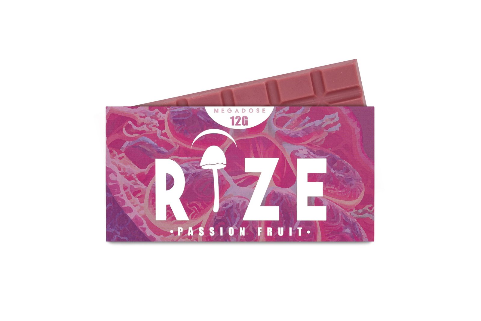 33% Ruby Chocolate, Organic Cacao Beans, Organic Cane Sugar, Organic Cocoa Butter, Passion Fruit Powder, Lion’s Mane Extract, Organic Mushroom Alkaloid Extract.